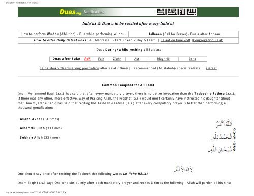 Dua A To Be Recited After Every Namaz